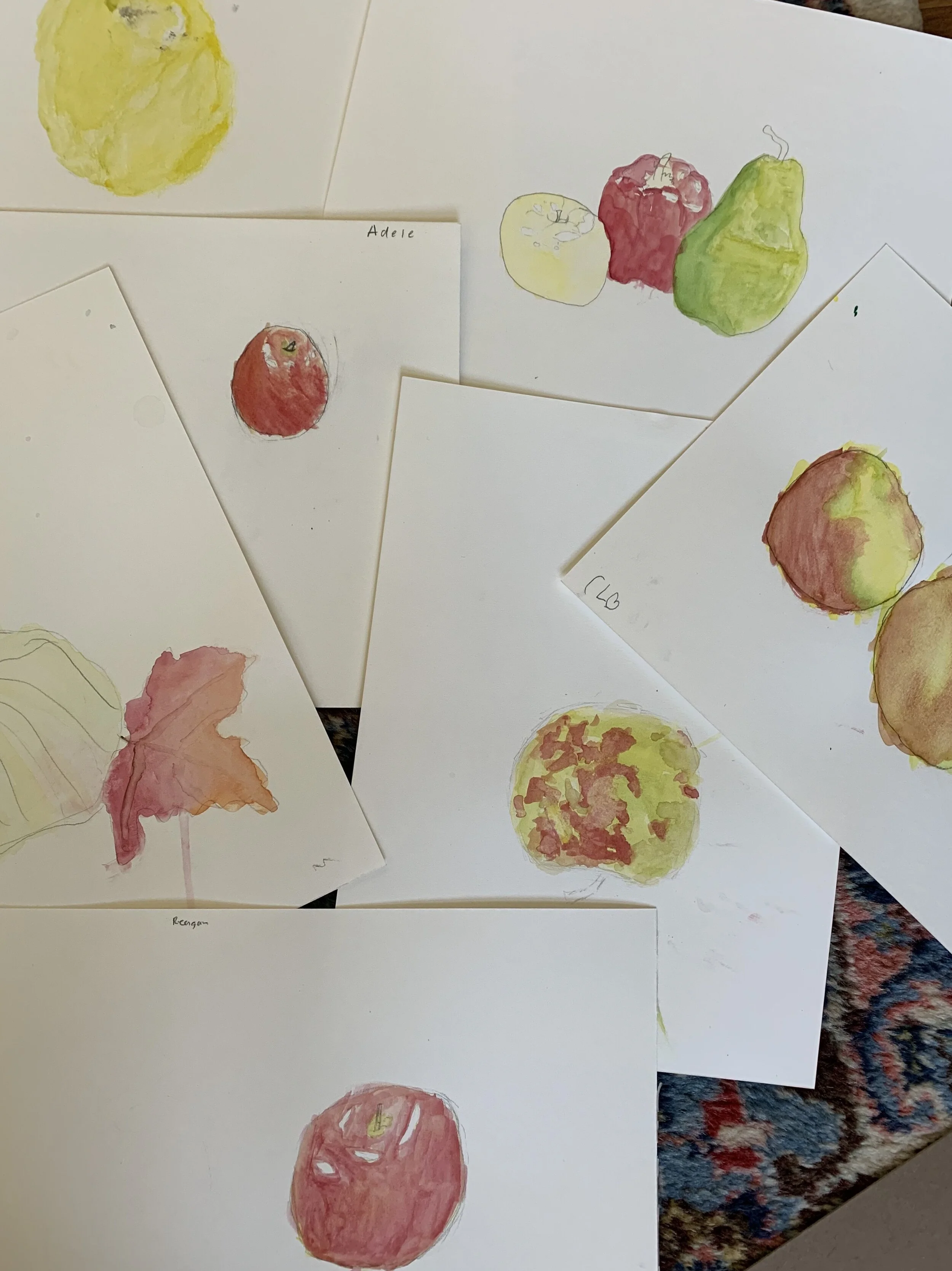 We simultaneously worked on a color wheel while we painted layers to a watercolor still life.