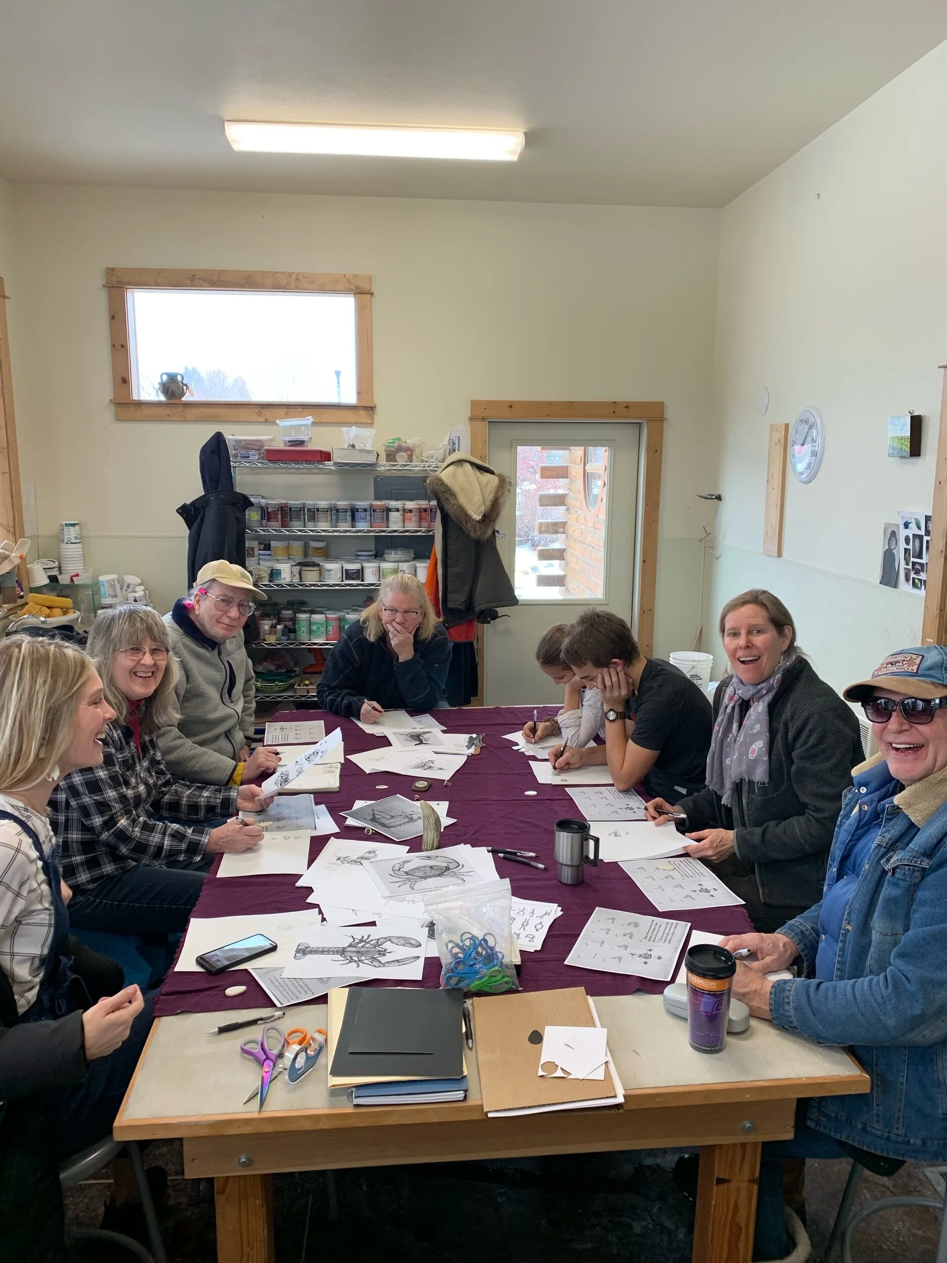 I think one of the hardest things to do in art is to slow down, relax, and take the time to let yourself create with peace. After a few minutes, I told the class just that; and that they had two full hours to create their pieces of scrimshaw.