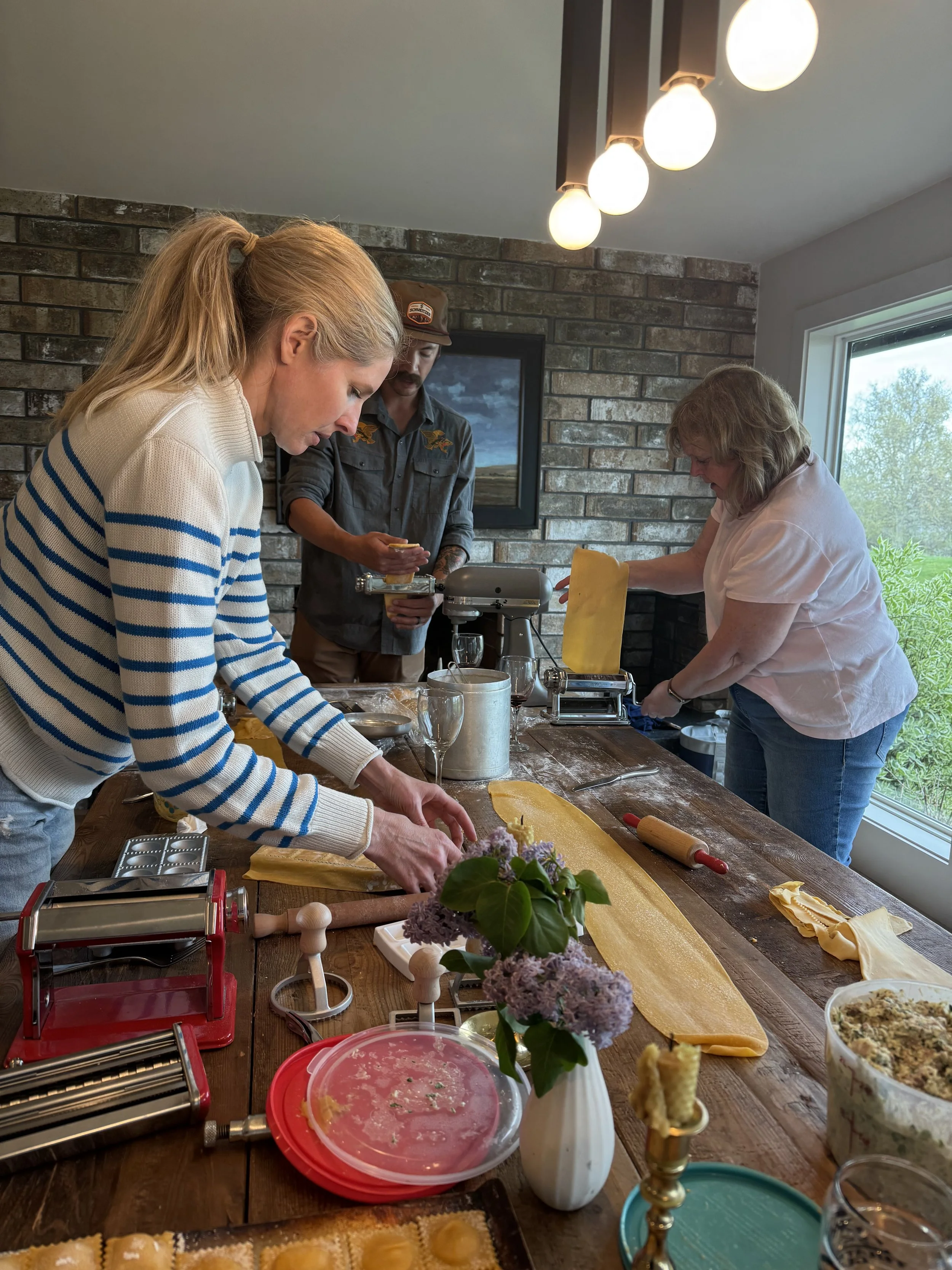Our pasta making party began serendipitously when my sister thought up the simple idea of enjoying the whole process together then sitting down to enjoy it together.